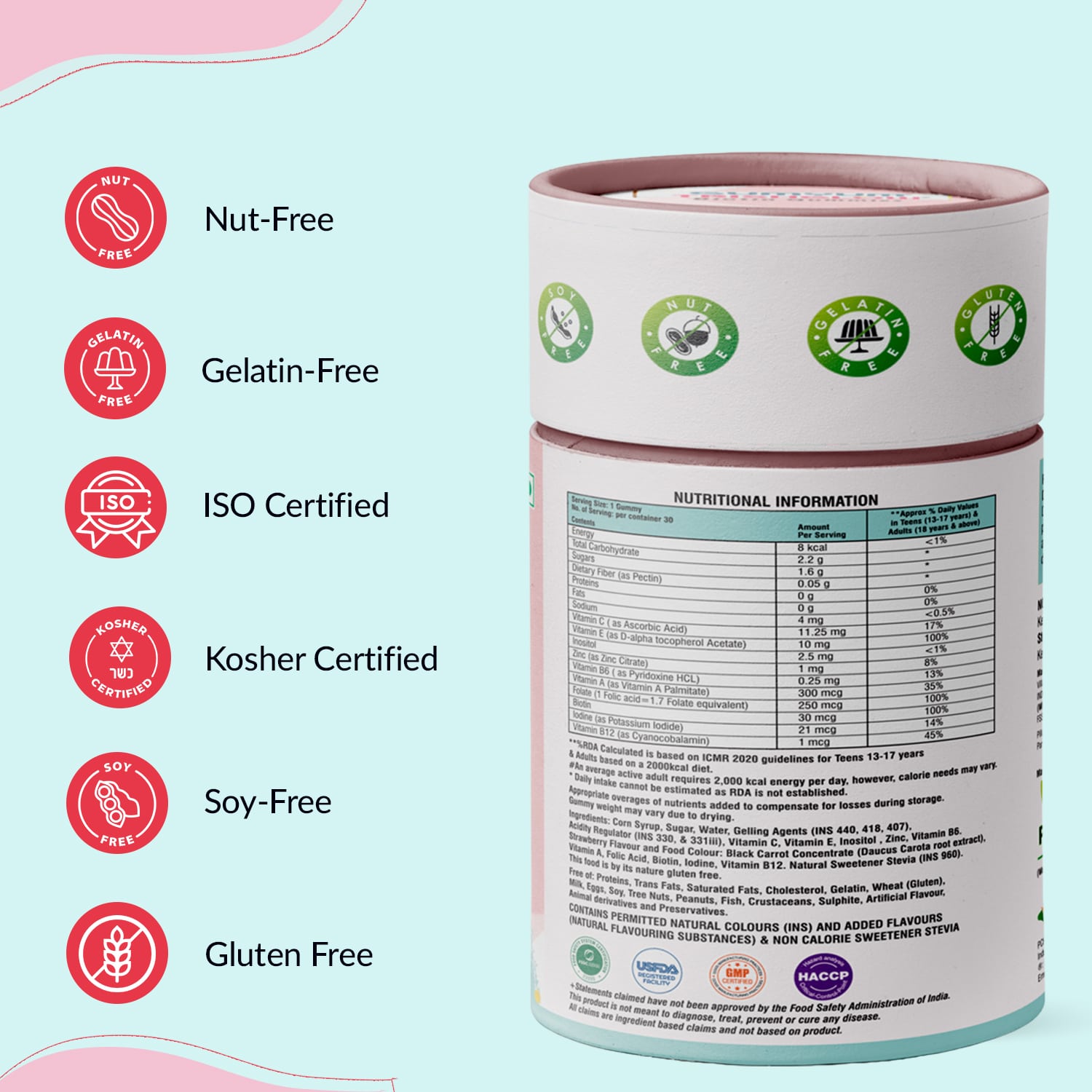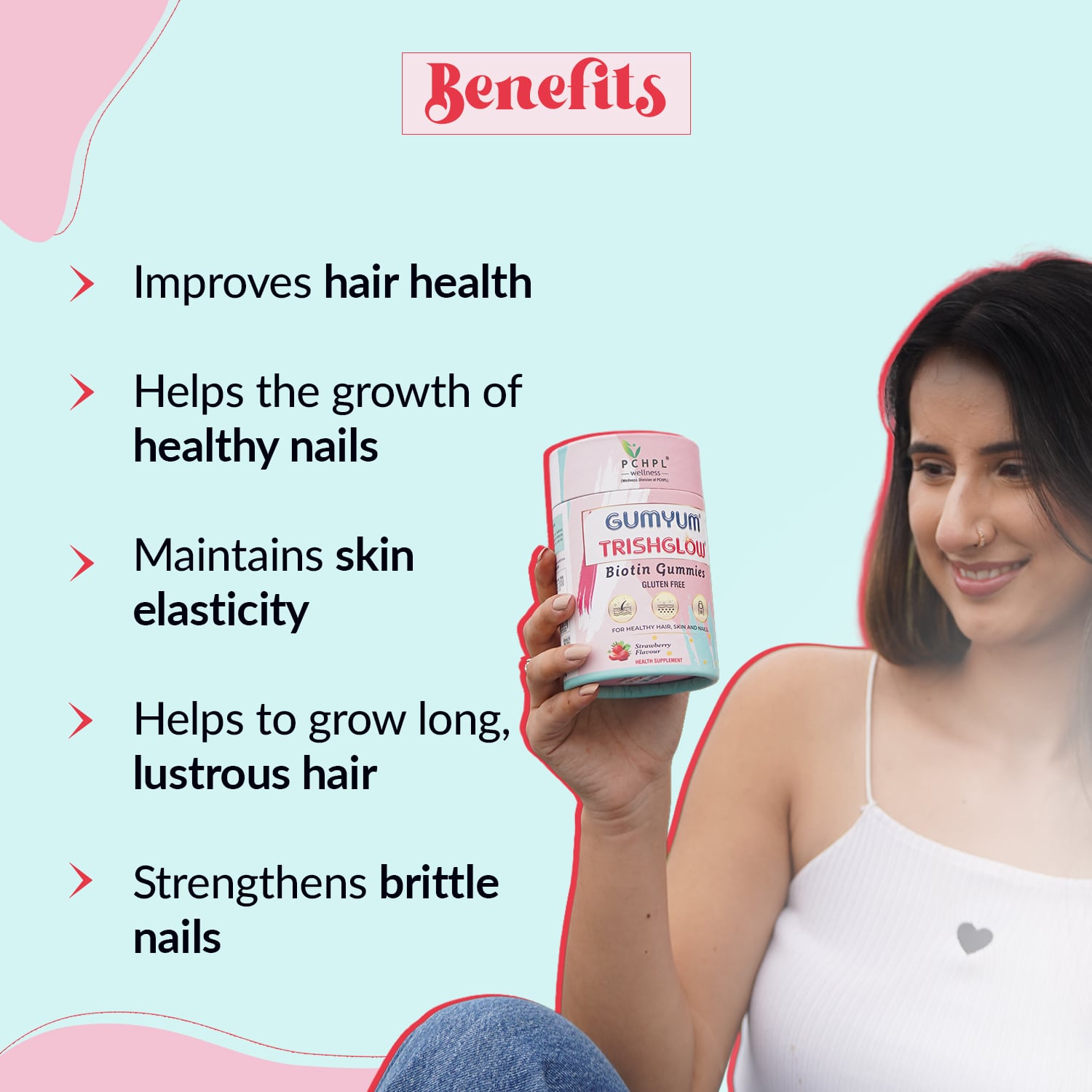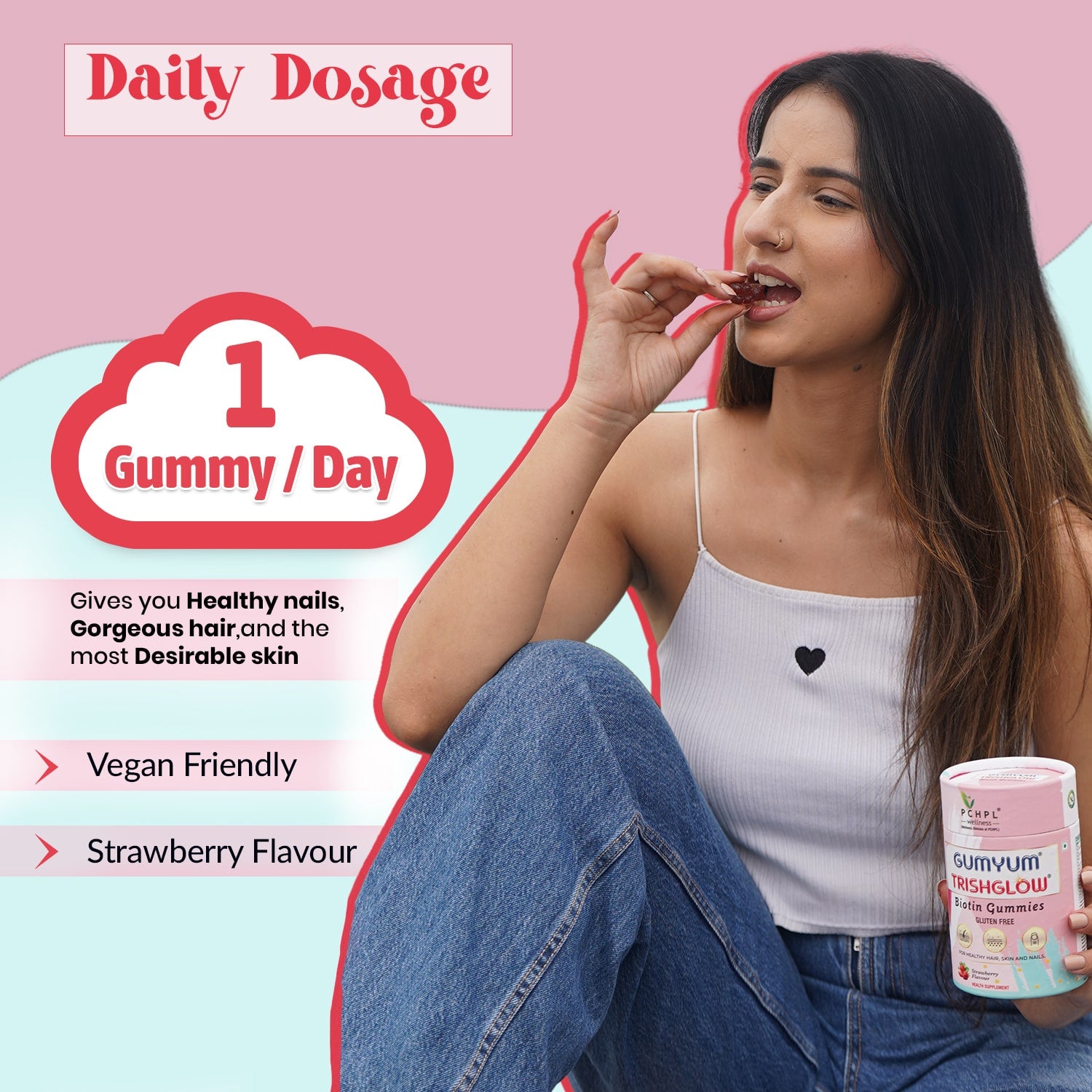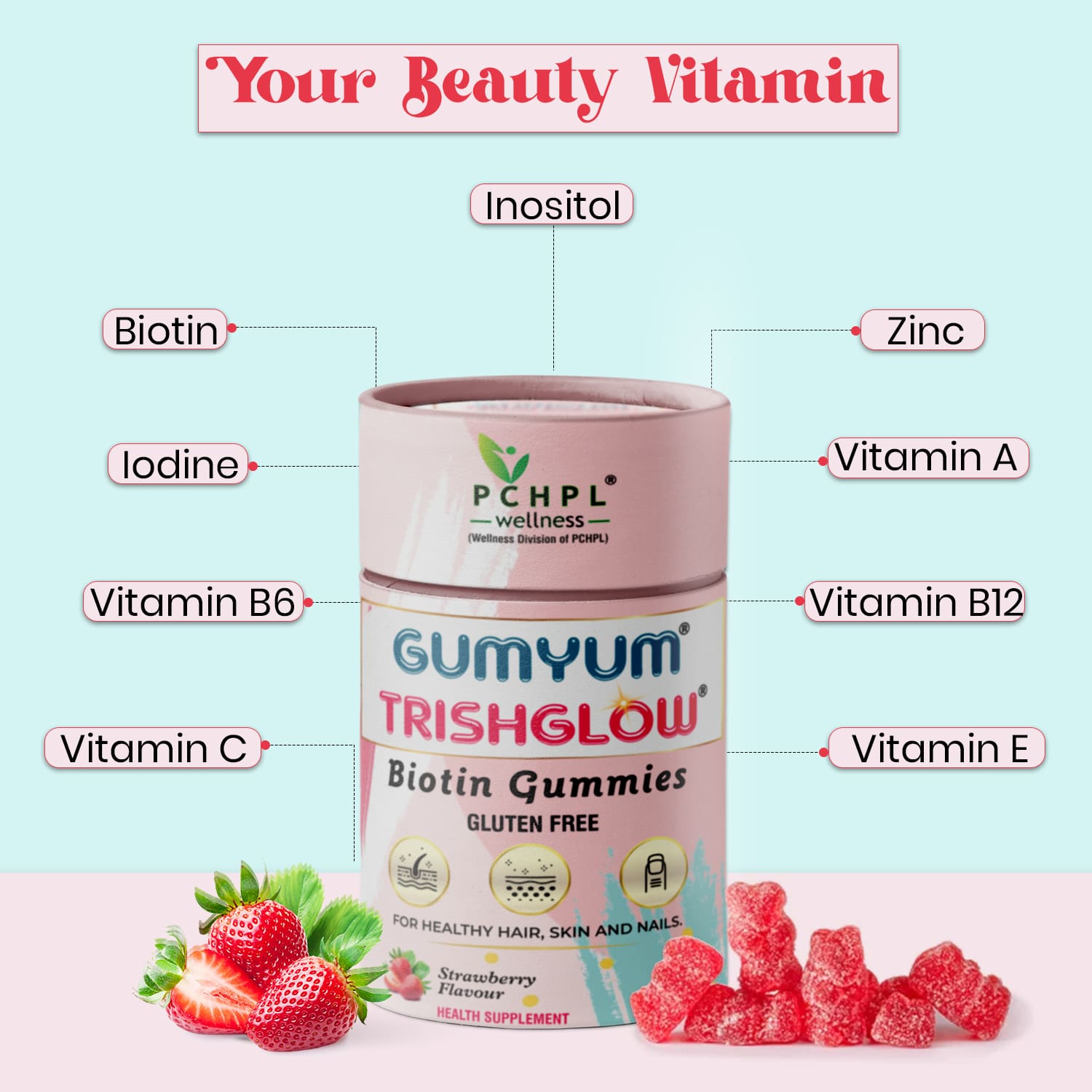 Don’t let the size of bears fool you; these little gummies deliver impressive results. Gumyum Trishglow Biotin gummies promote the health of hair, skin, and nails by providing a blend of essential vitamins and minerals, including Biotin (Vitamin B7), Zinc, Iodine, and Vitamins A, B6, B12, C, and E.