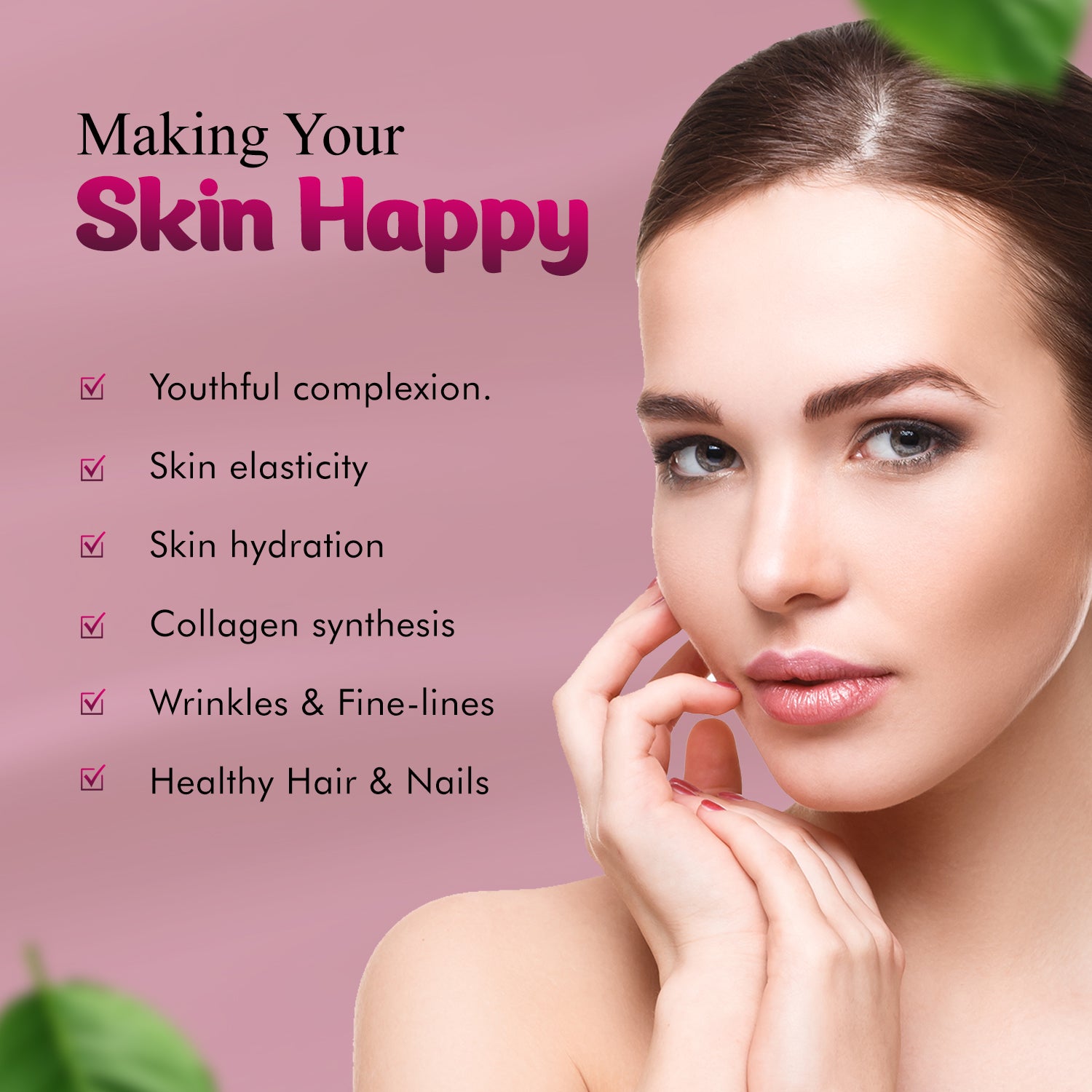 Vegan Collagen Peptides, Vegan Hyaluronic Acid, Acerola, Omega 3(DHA), Zinc, Seabuckthorn and Natural Vitamin E