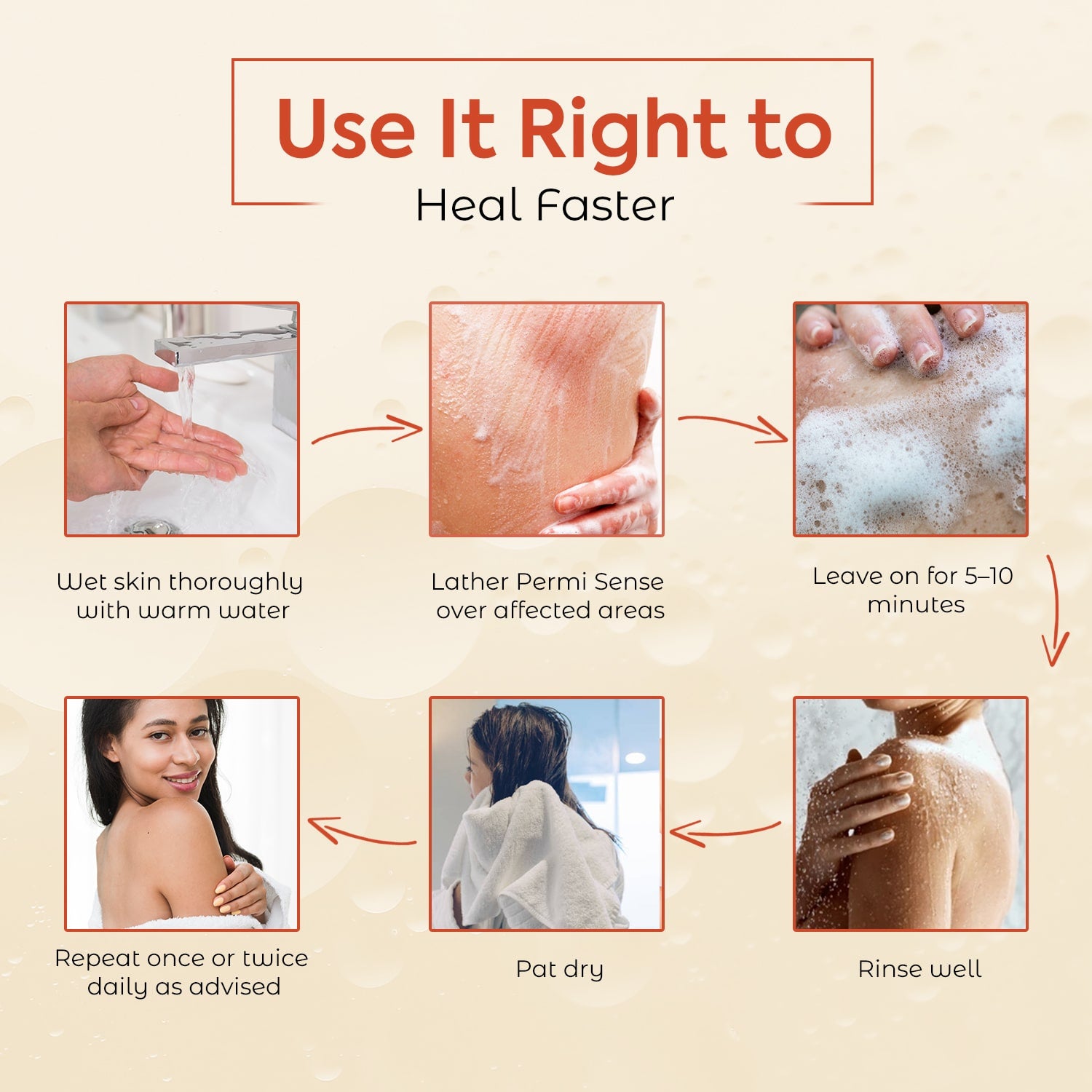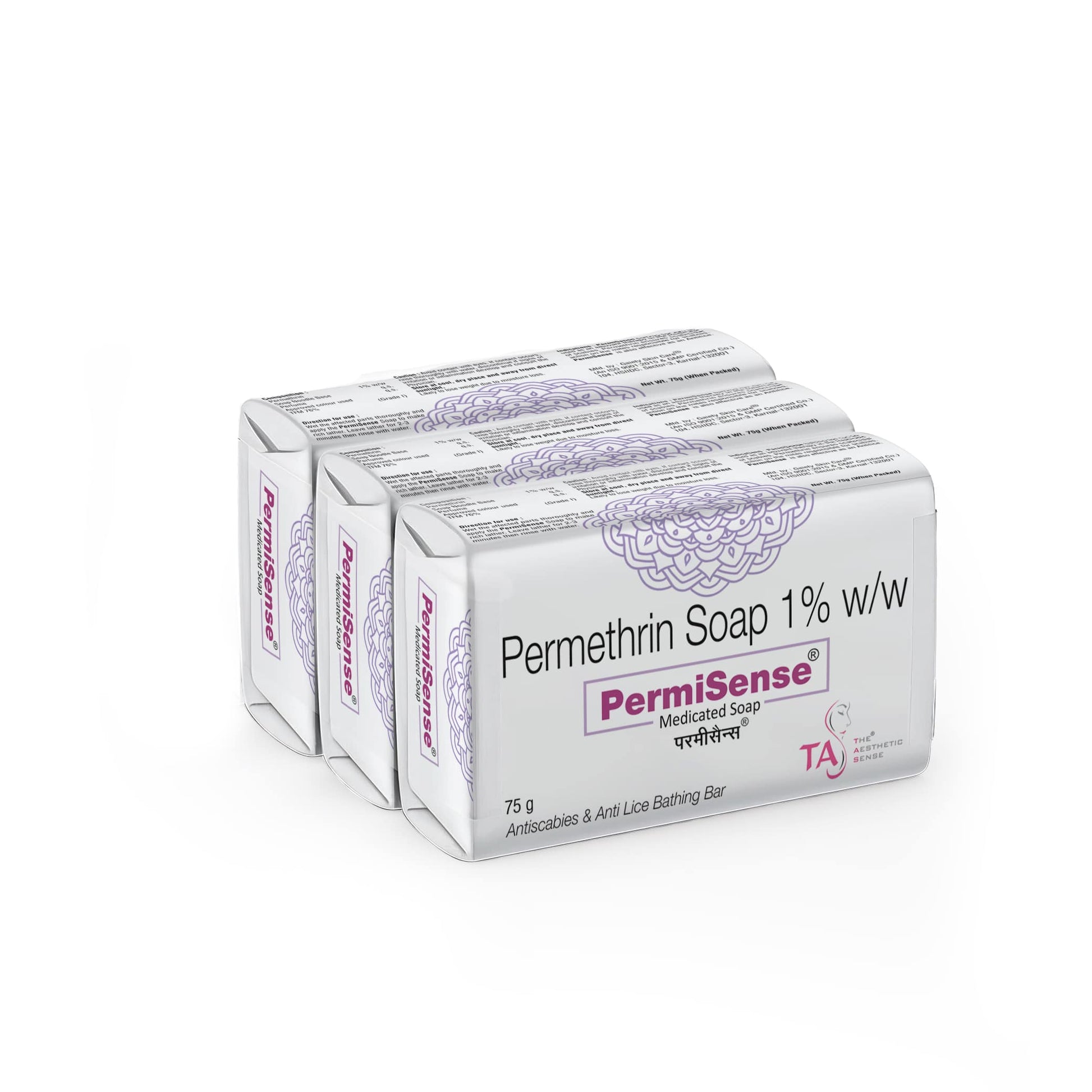 The Aesthetic Sense Permi Sense Medicated Soap is a bathing bar enriched with Permethrin, known for its skin problems and anti-lice properties. This soap is your shield against skin rashes, irritation, and redness. Specifically designed to combat these issues, it also helps to wipe out lice and their eggs from the scalp, promoting healthier hair and skin. Ensure your skin's well-being and say goodbye to skin diseases and lice with Permi Sense Medicated Soap.