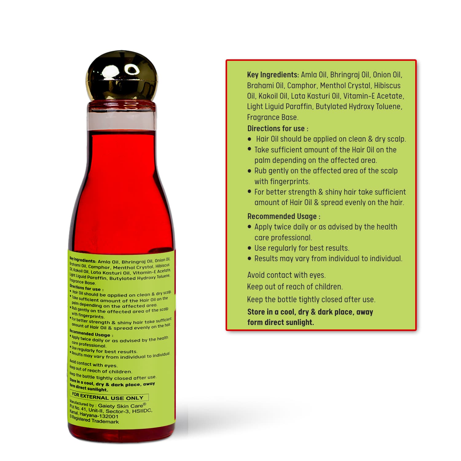 Onion, Bhringraj, Amla, Brahmi, Camphor, Menthol crystal, Hibiscus oil, Kakoli oi, Lata Kasturi oil
